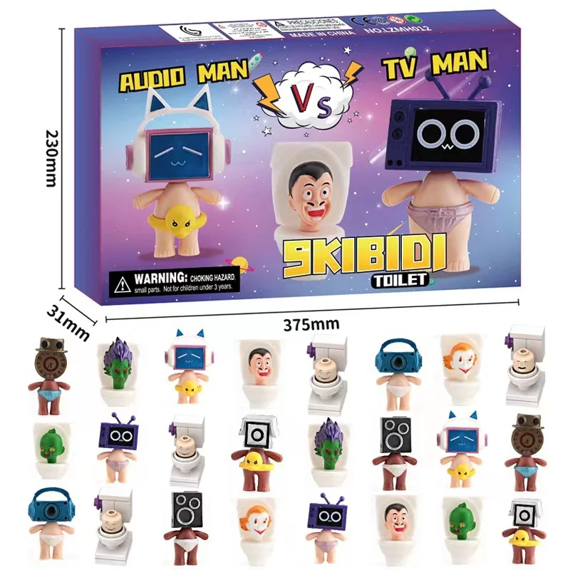 Behind each door is a ornament with the theme of Toilet people, including miniature souvenirs and more! Psst. check the 'More Info' tab if you want to know exactly what you get 24 randomly selected gifts of Toilet people gifts out of 100 mini keepsakes